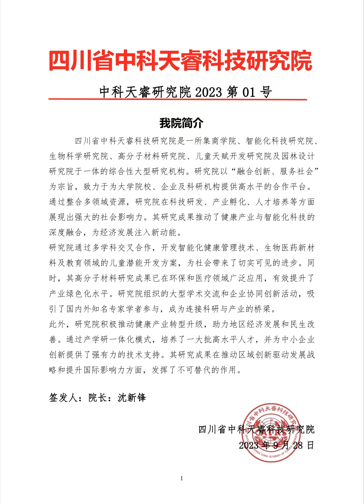 四川省中科天睿科技研究院是一所集商学院、智能化科技研究院、生物科学研究院、高分子材料研究院、儿童天赋开发研究院及园林设计研究院于一体的综合性大型研究机构。研究院以“融合创新、服务社会”为宗旨,致力于为大学院校、企业及科研机构提供高水平的合作平台。通过整合多领域资源,研究院在科技研发、产业孵化、人才培养等方面展现出强大的社会影响力。其研究成果推动了健康产业与智能化科技的深度融合,为经济发展注入新动能。
